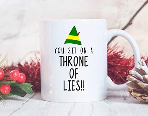 Amazon Com You Sit On A Throne Of Lies Elf Quote Mug Christmas Coffee Mug Elf Coffee Mug Elf Movie Quote Mug Buddy The Elf Mug Elf Gift Only One Mug Kitchen