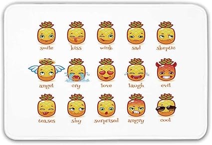 Esteras de puertas antideslizantes con respaldo de goma de Emoji, piñas divertidas con caras Carita triste Beso escéptico Amor Risa Se burla el ángel Malvado Tapete de felpa decorativo Alfombras de ba:
