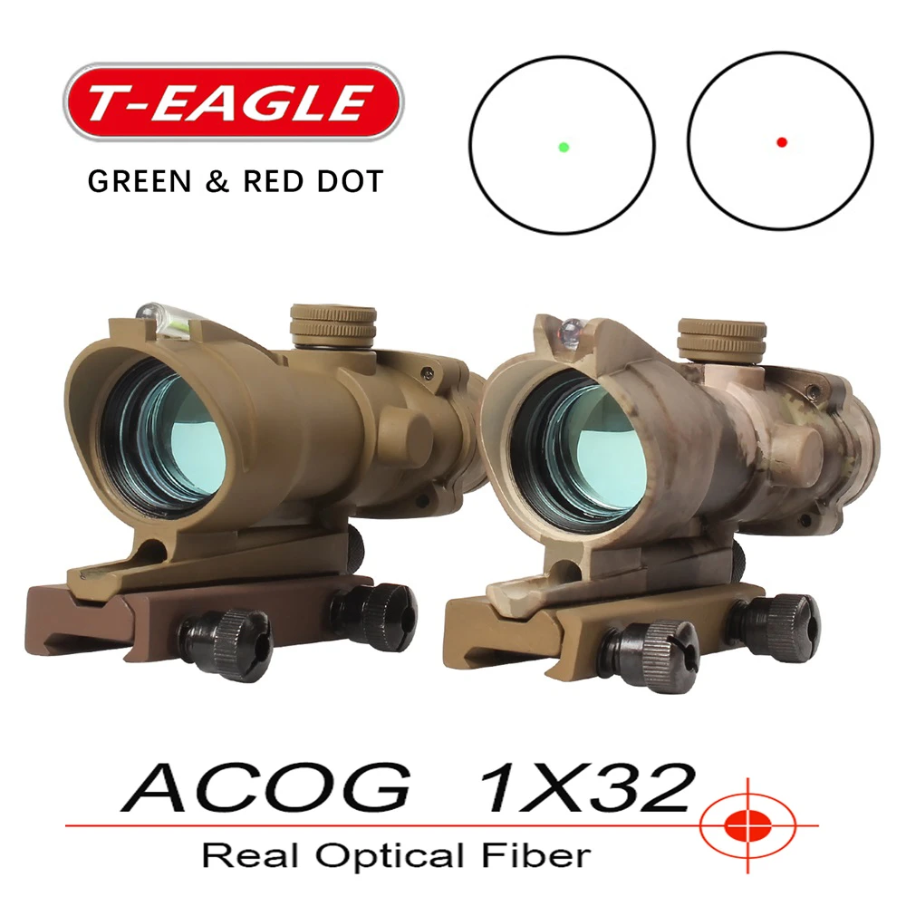 T eagle ACOG 1x32 Optical Rifle Scopes Spotting red dot M416 Reticle With 20MM Mounts riflescope hunting optics sight|Riflescopes| - AliExpress