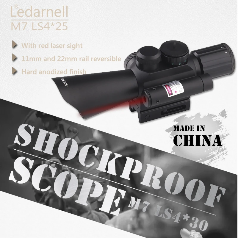 M7 4X30 Rifle Scope Red Green Mil Dot Reticle with Side Attached Red laser Sight Mount Tactical Optics Scopes Riflescope|tactical optic|scope redrifle scope - AliExpress