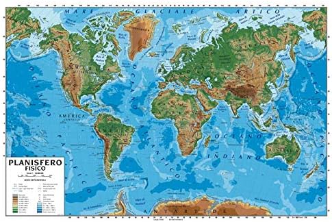Carta geografica murale planisfero mondo 100x140 scolastica bifacciale fisica e politica: Amazon.it: Cancelleria e prodotti per ufficio