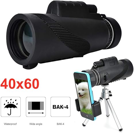 Amazon.com : Monocular Telescope, 40X60 High Power HD Monocular with Smartphone Holder & Tripod - [Upgrade] Waterproof Monocular with Durable and Clear FMC BAK4 Prism Dual Focus for Bird Watching, Camping, Hiking :