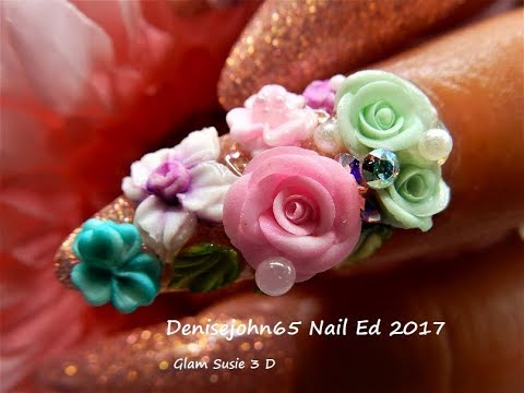 Happy BIRTHDAY-----Birthday CAKE Looking Nails —- w/ Glam Susie 3 D Flowers ------ACRYLIC NAILS - YouTube